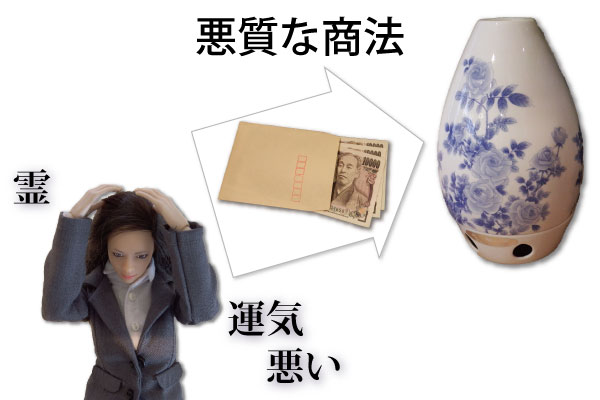 そして鑑定などをしてから、「たたりがある」などと言って相手を脅したり不安にさせて、高額の祈祷料を支払わせたり商品を買わせるわけです。